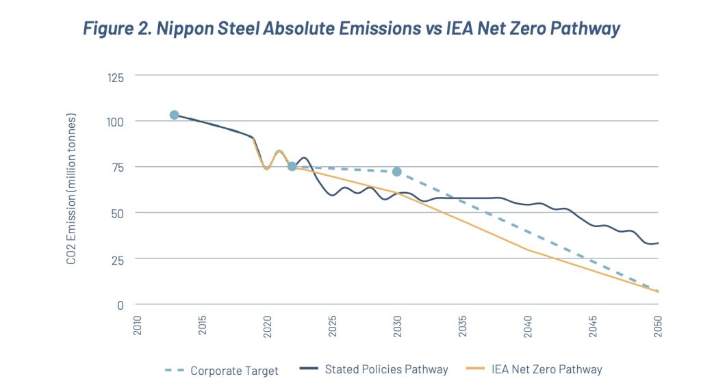 Figure 2. Nippon Steel Absolute Emissions vs IEA Net Zero Pathway
