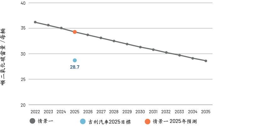 圖一、吉利汽車的車輛生命週期碳排放目標