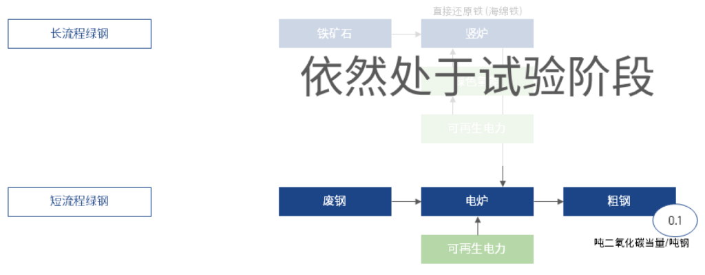 长流程绿钢依然处于试验阶段。短期内还没有已经商业化及可广泛推广的、适用于长流程炼钢脱碳的解决方案。