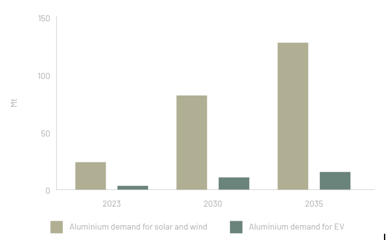 Figure 2. China’s solar and EV growth and corresponding aluminium demand, 2023-35