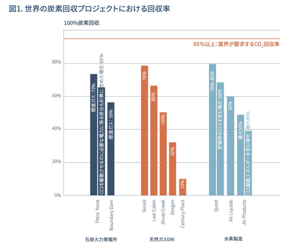 また、炭素回収装置のエネルギー源には再生可能エネルギー由来電力を使わないと、炭素回収とCO2圧縮のためにさらに化石燃料由来エネルギーが必要となり、かえって排出量が増加するおそれがある点にも留意すべきである。21
