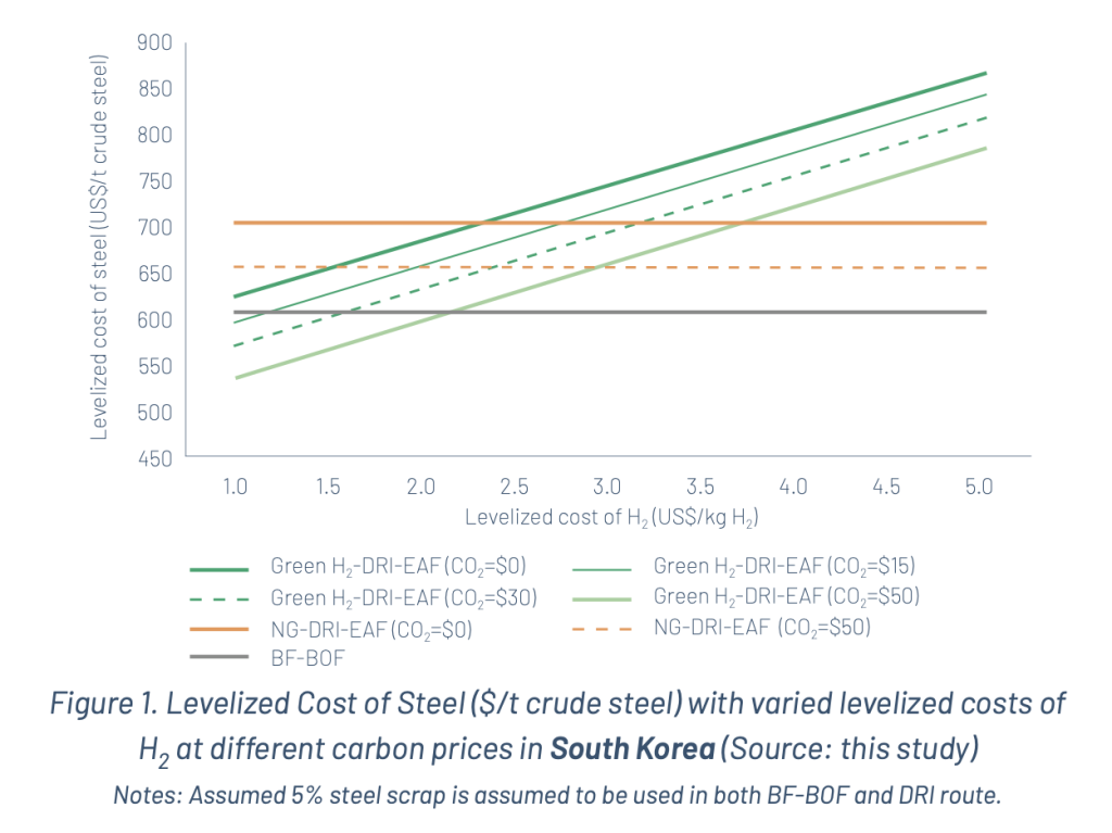 Green Steel Premium across H2 Prices and the Impact of Carbon Prices in South Korea