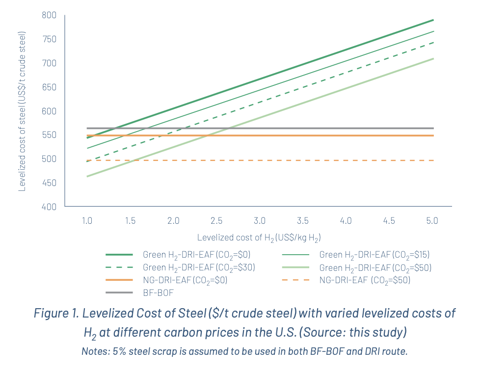 Green Steel Premium: Impact of H2 Prices and Carbon Prices in the U.S.