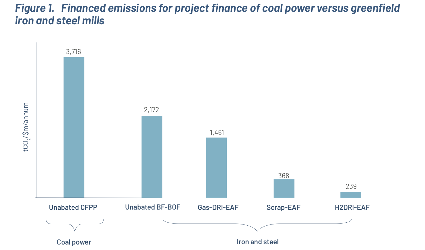 Project finance is funding regularly used for long-term industrial projects, such as CFPP and steel technologies such as BF-BOF mills. Financed emissions in this context refers to the emissions stemming from a specific project that receives financing, generally in the form of debt or long term equity.