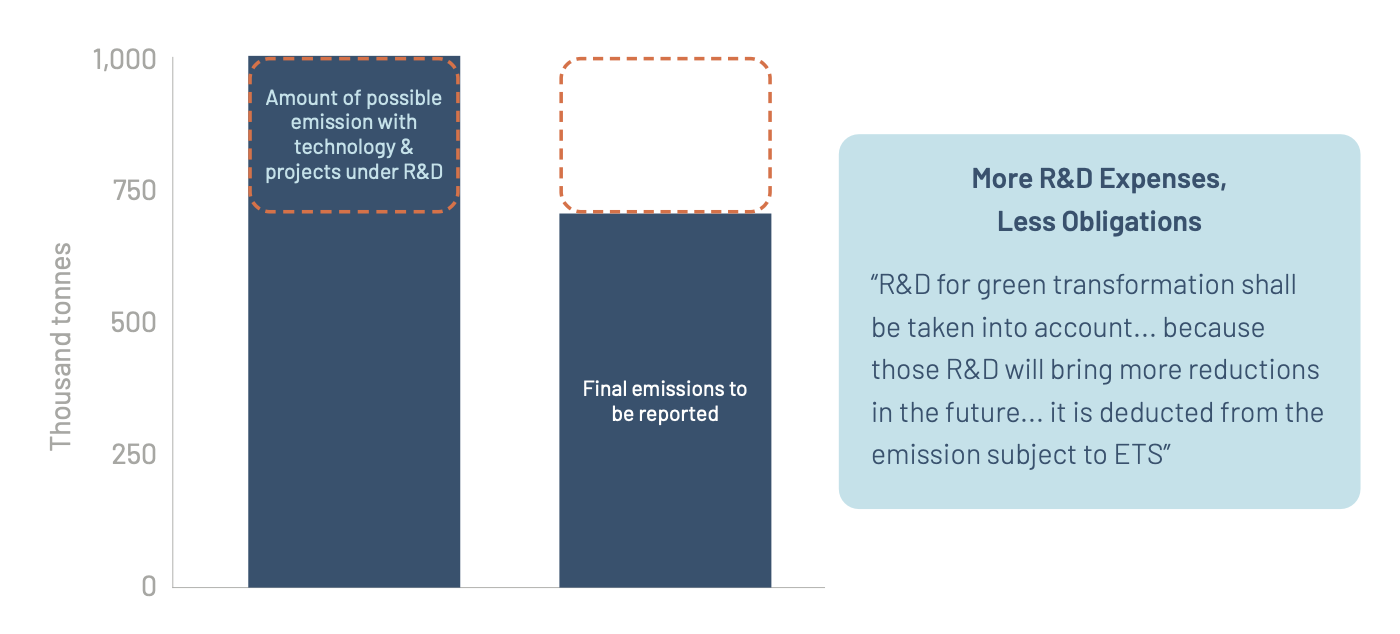 However, it is expected that the major hard-to-abate industries are likely to enjoy free allocations from the beginning of ETS’s implementation, in addition to exemptions depending on how much they spend on R&D projects (Figure 2). Expenses for R&D are likely to be taken into account in the process of figuring out quotas for each company.