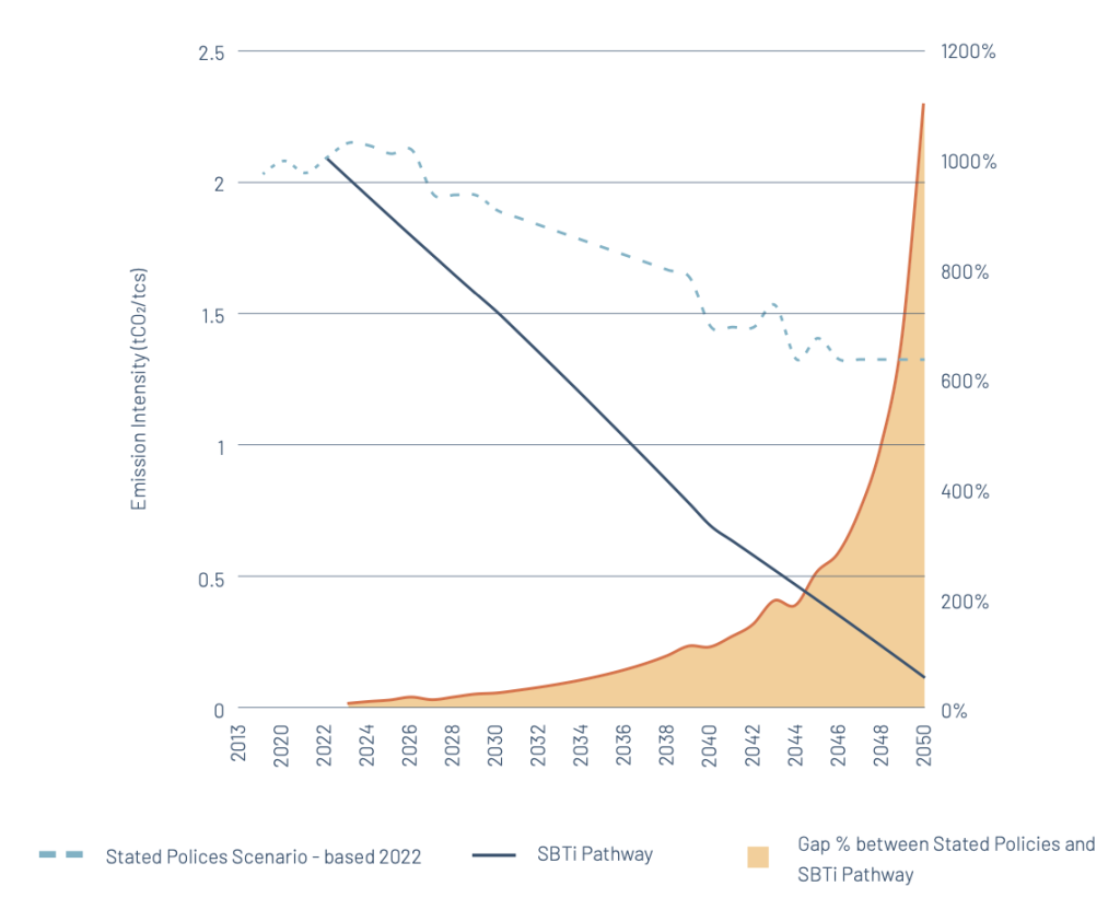 The SBTi Intensity Target: reflects the sectoral decarbonisation approach target using the SBTi’s Iron and Steel target setting tool.7
