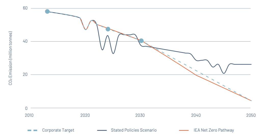 Figure 2. JFE Absolute Emissions vs IEA Net Zero Pathway