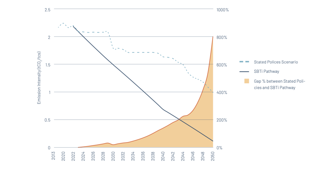 The SBTi Intensity Target: reflects the sectoral decarbonisation approach target using the SBTi’s Iron and Steel target setting tool.22