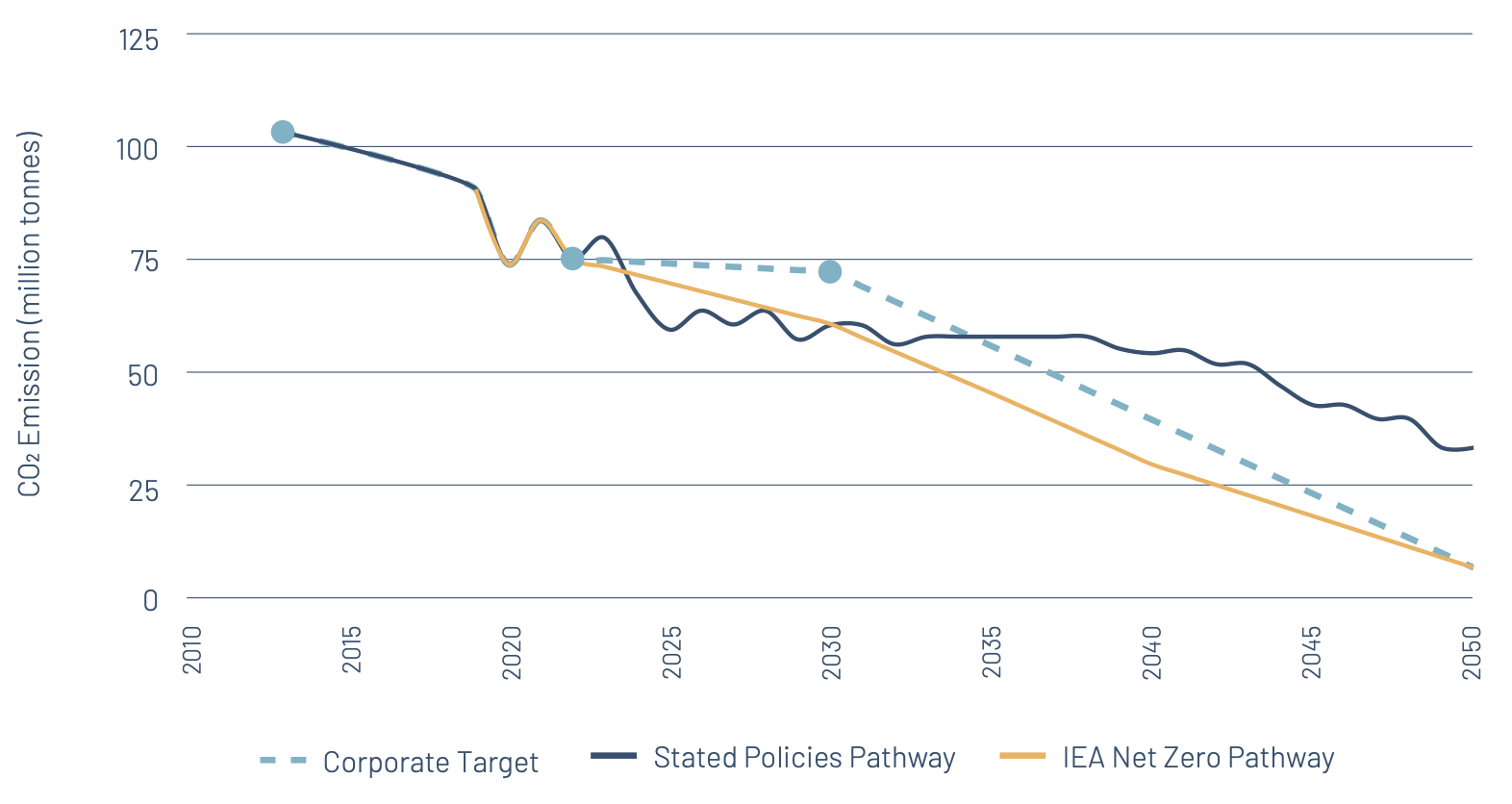 Figure 2. Nippon Steel Absolute Emissions vs IEA Net Zero Pathway