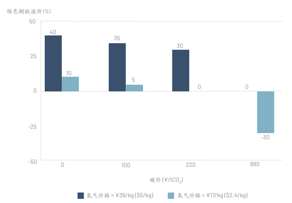 - 即使在目前约每吨100元的碳价下,绿色钢铁的溢价也可以降至35%。