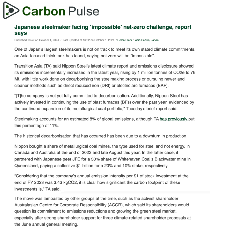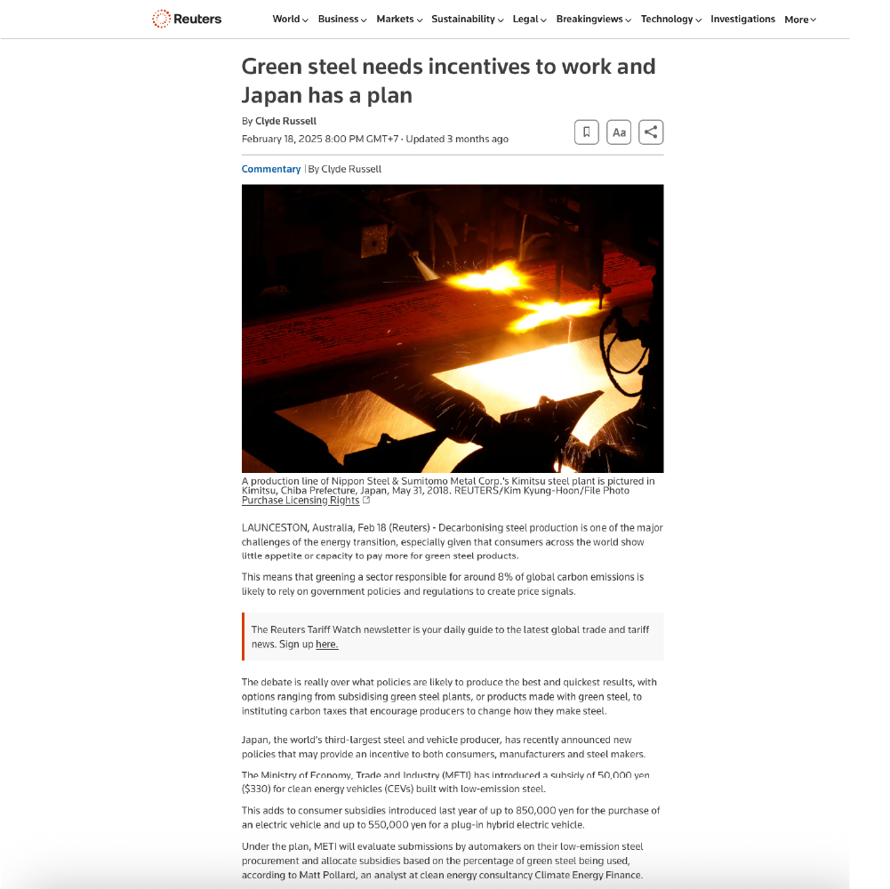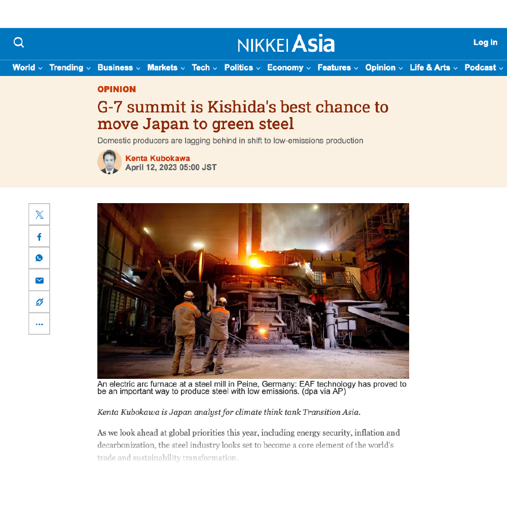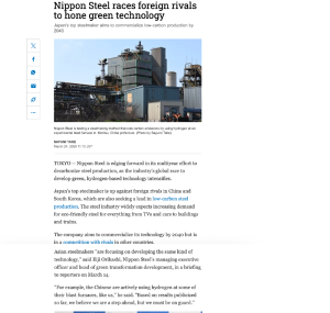 Kenta Kubokawa is quoted by Nikkei Asia on Japan low-carbon steel development