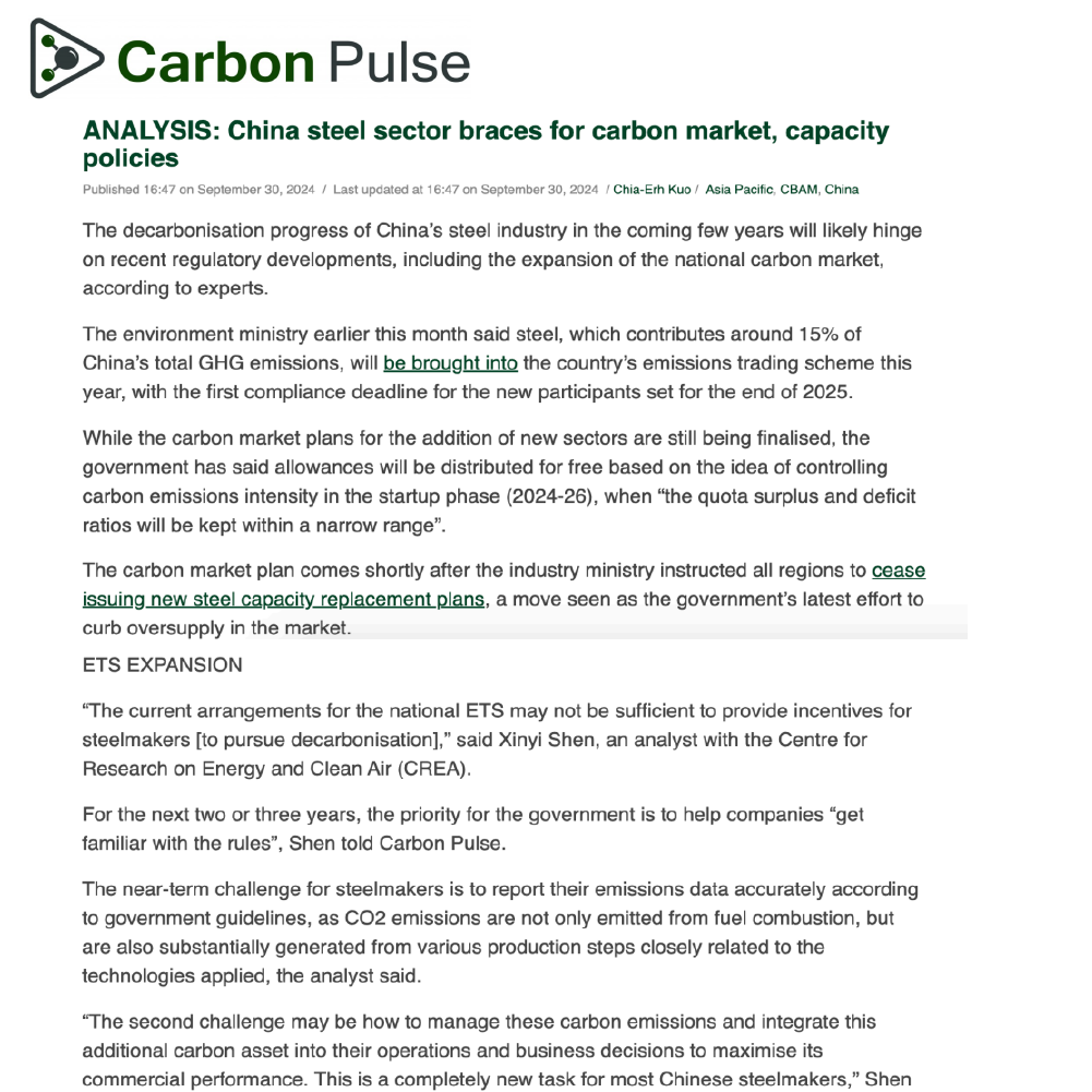 Our analyst is quoted by S&P Global on CBAM’s impact on Chinese steel sector