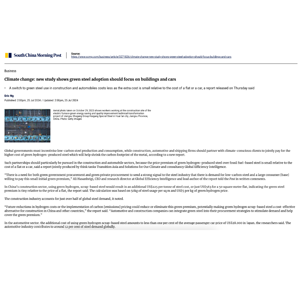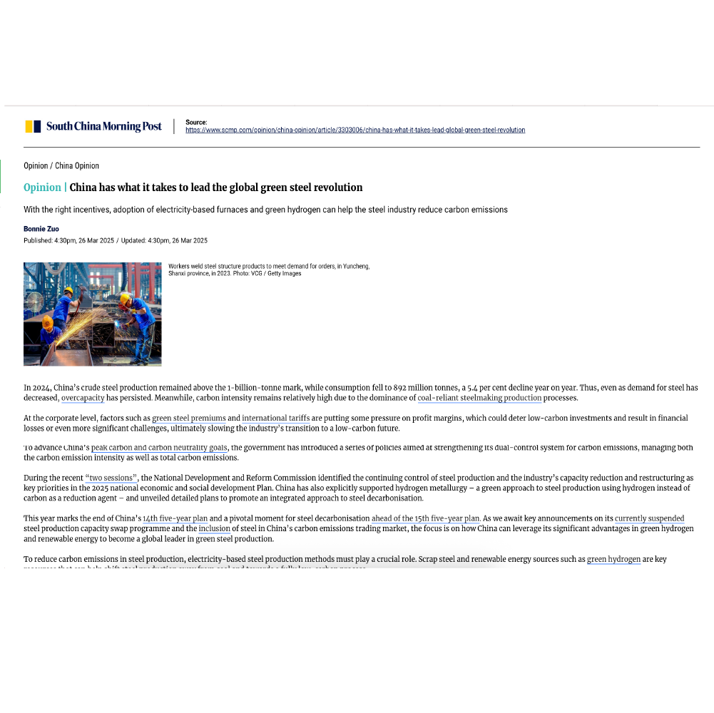 Bonnie Zuo contributes SCMP op-ed on China low-carbon steel development