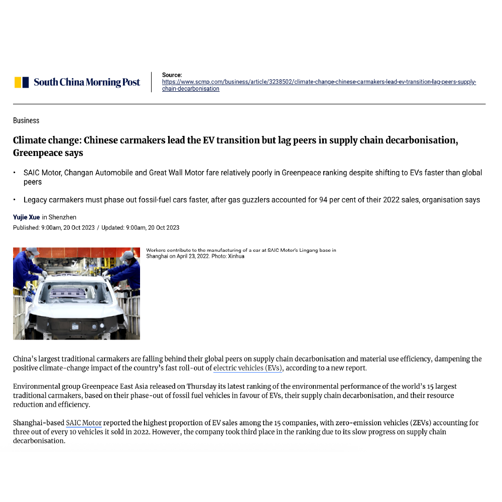 Bonnie Zuo and Lauren Huleatt are quoted by SCMP on supply chain decarbonisation
