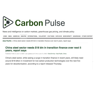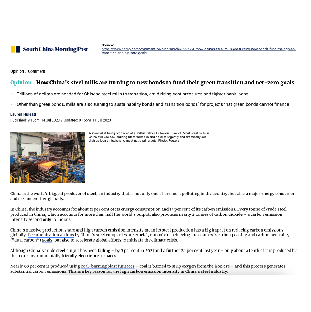Lauren Huleatt writes for SCMP on green finance options for Chinese steel sector