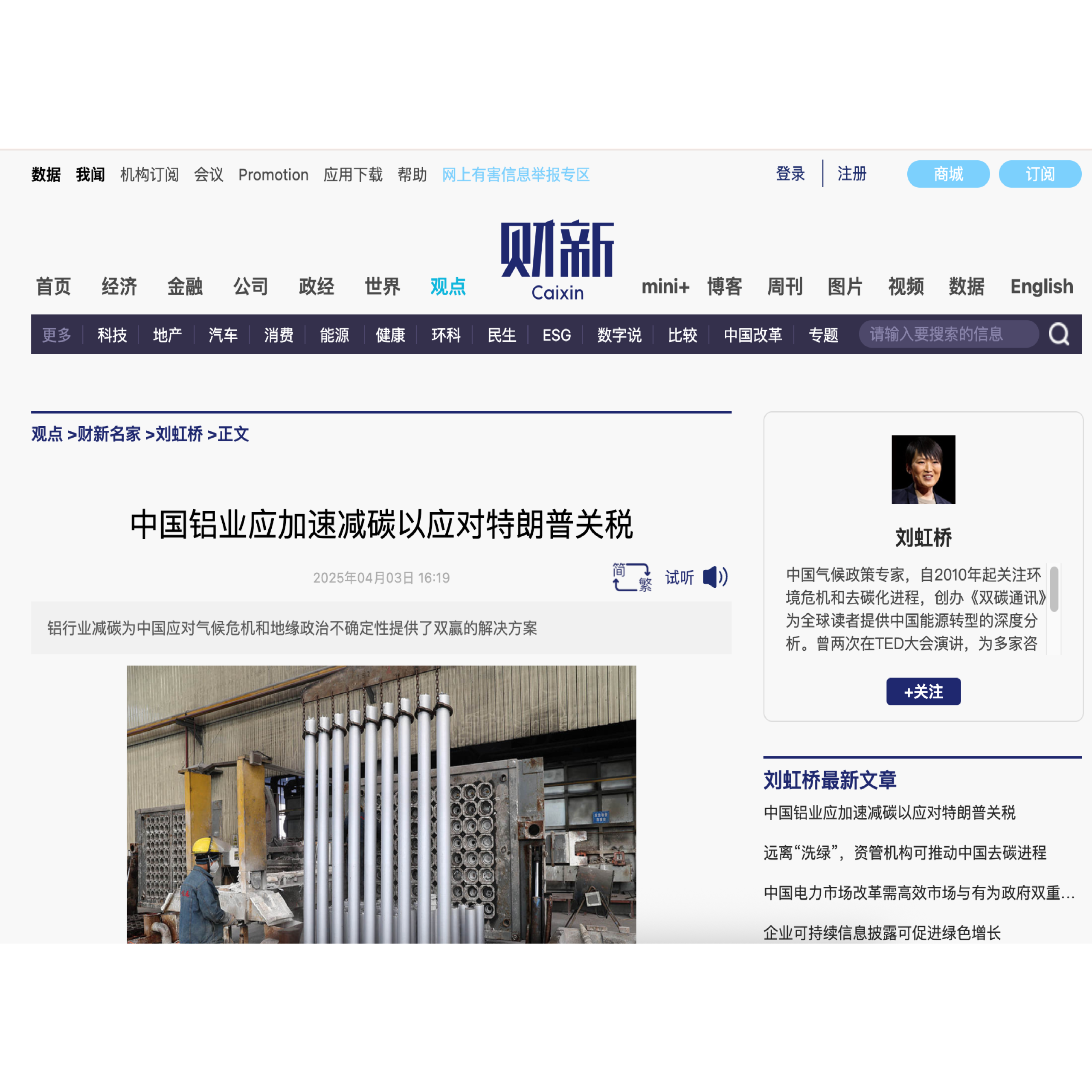 Vittoria Chen contributes to Caixin op-ed on China’s aluminium decarbonisation outlook