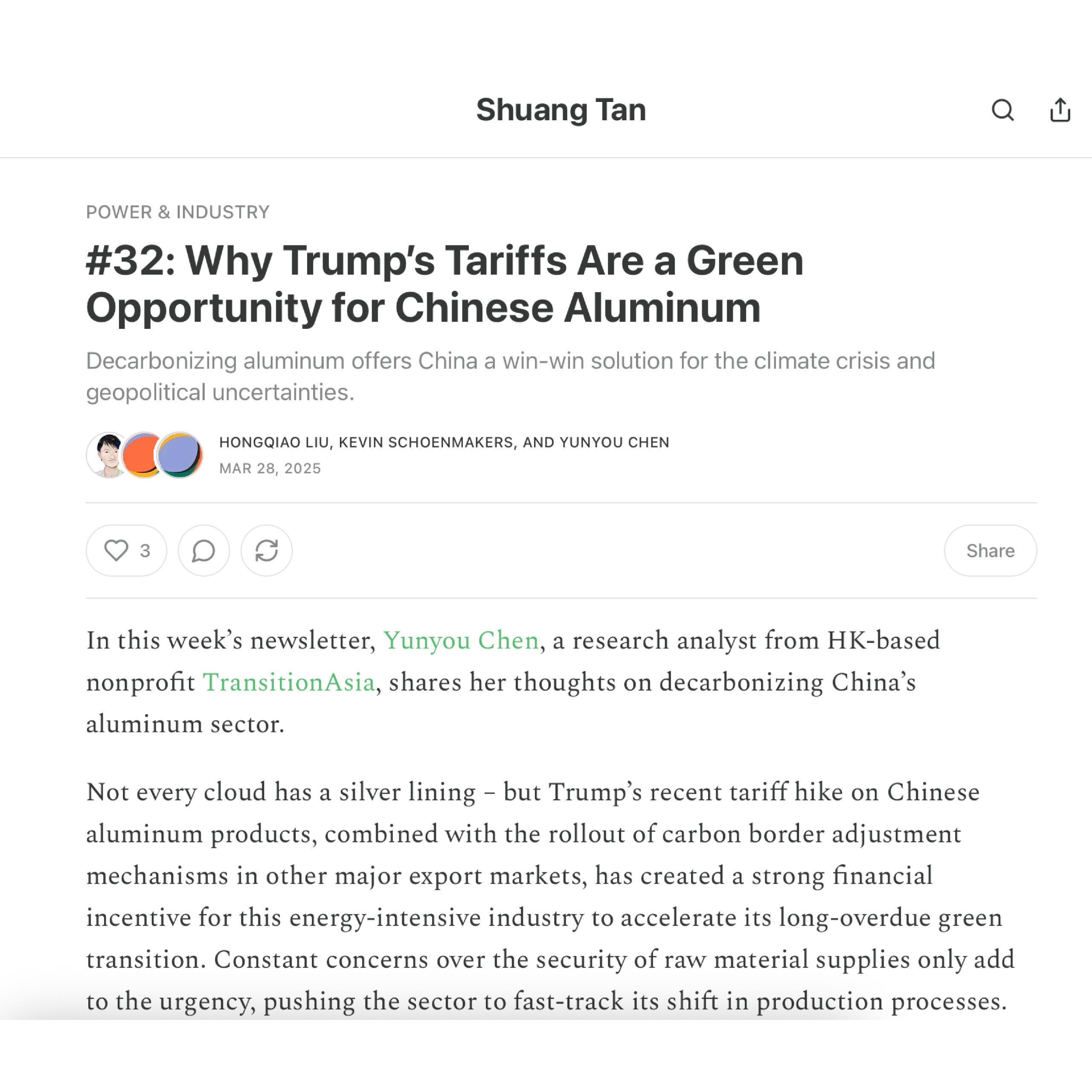 Vittoria Chen contributes to Shuang Tan op-ed on China’s aluminium decarbonisation outlook