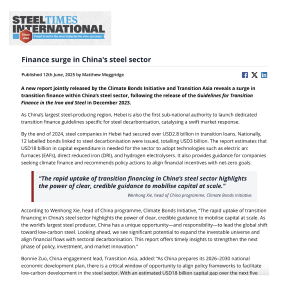 Steel Times International  covers the latest report co-authored with Climate Bond Initiatives.